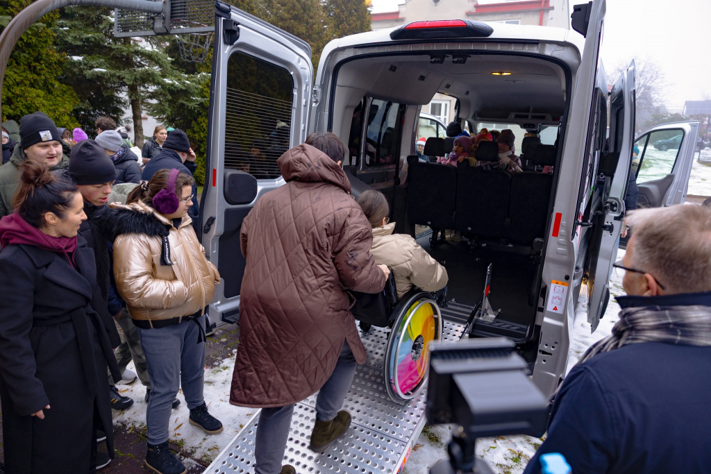 Pojazd wyposażony jest w specjalną platformę, która umożliwia wygodny i bezpieczny wjazd. Mieszczą się tu nawet dwie osoby na wózkach jednocześnie. To praktyczne wsparcie, które ułatwi codzienne funkcjonowanie i zapewni dzieciom komfort oraz bezpieczeństwo podczas transportu do szkoły lub na wycieczki. Nowe auto zastąpiło już wysłużony, 18-letni samochód.